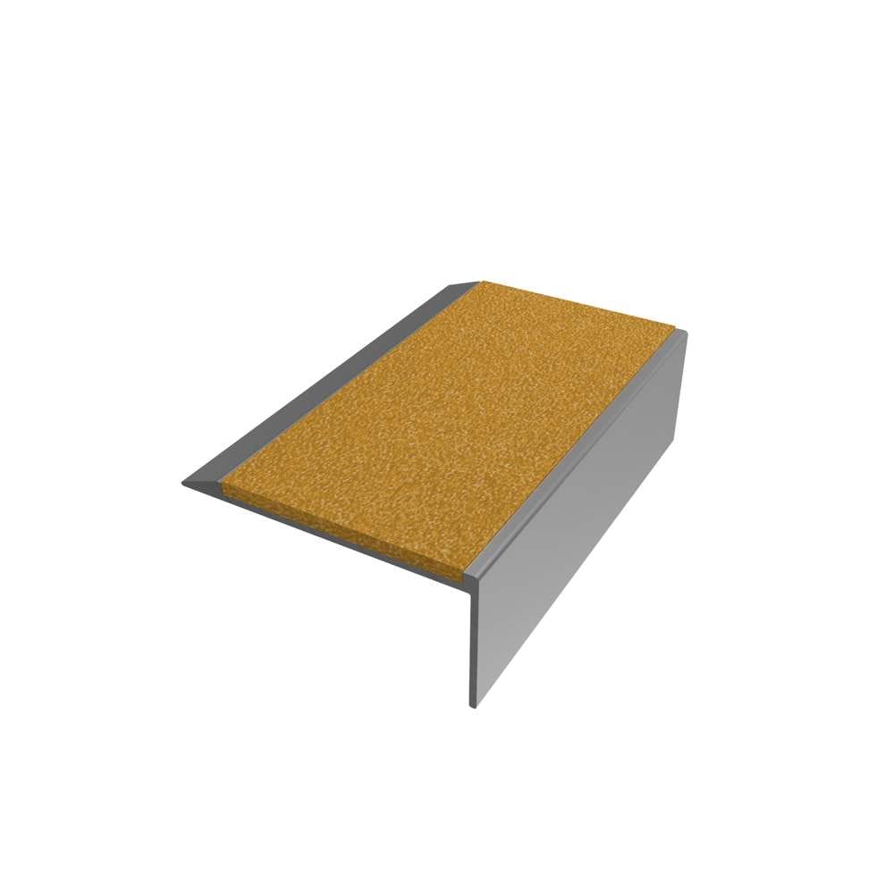 AN15 GRP is a ramp tread, square riser, single-channel stair nosing available with GRPTI49.5 Infill. The body of this nosing is available in Mill Aluminium and can be ordered to measure.