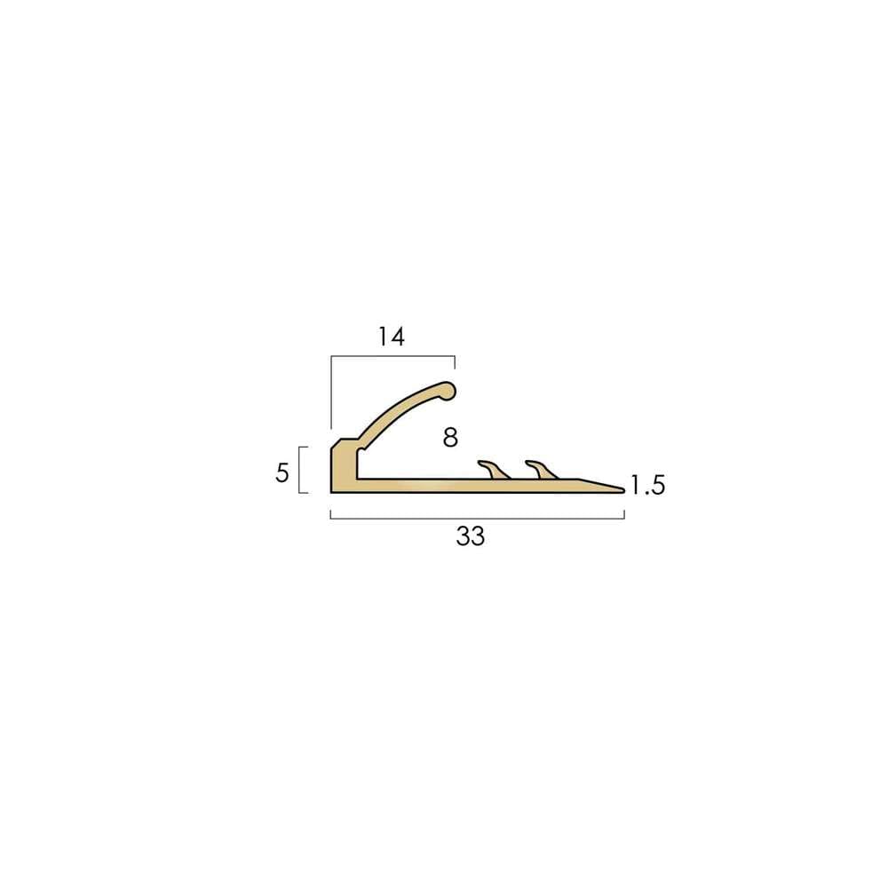 For installing behind 4.8mm and 5mm brass stair nosings to trap and protect the nap edge of the carpet on stairs. Dress down using a block of wood protected with carpet (or similar) and a hammer, working along the profile with even blows. Can also be used as a stand-alone profile when abutting carpet to 5mm floor coverings.